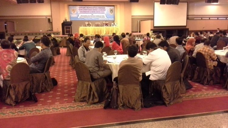 Banjarmasin – Komisi Penyiaran Indonesia Daerah (KPID) Kalimantan Selatan (Kalsel) selenggarakan workshop kelembagaan selama 1 (satu) hari di Hotel HBI Banjarmasin, Kamis, 07 November 2013. Kegiatan diikuti 150 orang peserta yang terdiri dari Komisi I DPRD, Biro/Bagian Humas, Instasi yang membidangi Komunikasi dan Informasi, Lembaga Penyiaran, wartawan, PWI, media cetak, Parpol, Bawaslu, Panwaslu, KPU, BEM Peguruan Tinggi Negeri/Swasta, KMPS dan JPPR. Kegiatan tersebut bertemakan “ Menjaga Konsistensi Lembaga Penyiaran dalam Menggunakan Kanal Frekuensi sebagai Ranah Public untuk dimanfaatkan sebesar-besarnya guna kepentingan masyarakat “.