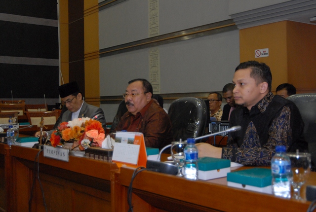 Jakarta – Pansus Rancangan Undang-undang Terorisme DPR RI melakukan rapat dengar pendapat (RDP) dengan Badan Nasional Penanggulangan Terorisme (BNPT) dan Komisi Penyiaran Indonesia (KPI) di ruang sidang Komisi VIII DPR RI, Kamis, 25 Agustus 2016. Hadir dalam RDP tersebut Ketua KPI Pusat Yuliandre Darwis dan Ketua BNPT Komjen Pol Suhardi Alius. RDP yang berlangsung mulai pagi hingga siang hari itu dipimpin langsung Ketua Pansus RUU Terorisme, Muhammad Syafii. RDP untuk mendapatkan masukan dari BNPT dan KPI terkait RUU Terorisme.