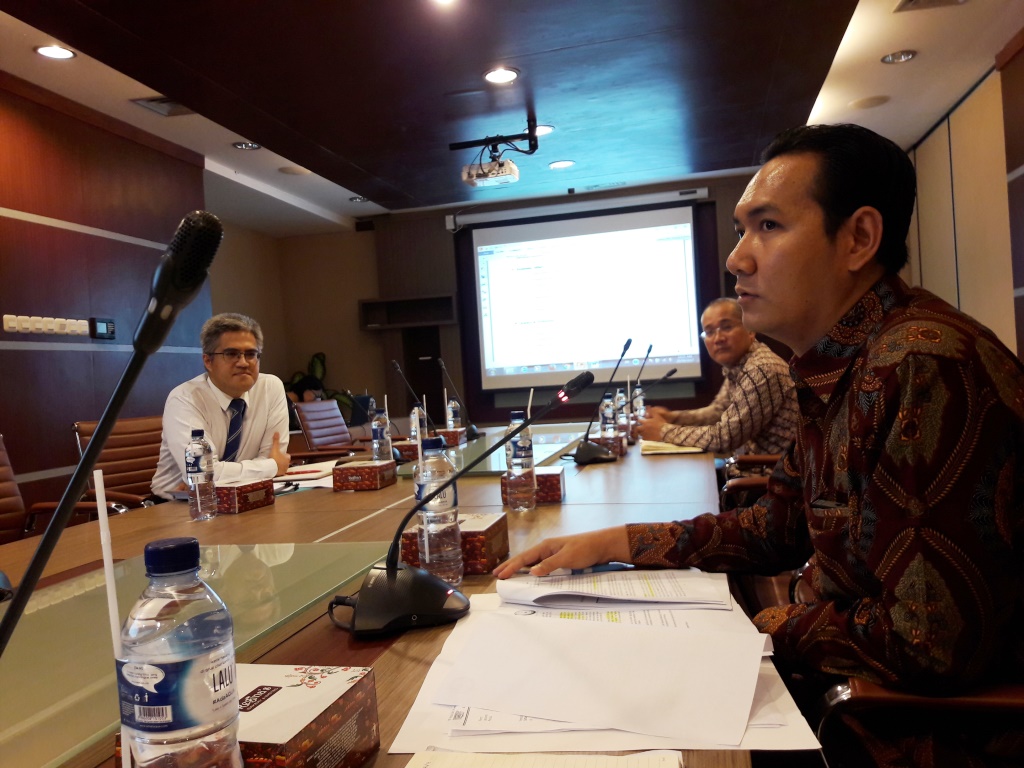 Komisioner KPI Pusat Bidang Kelembagaan Ubaidillah dan Kepala Subdirektorat Organisasi Internasional Negara Berkembang Direktorat Sosial Budaya dan Organisasi Internasional Negara Berkembang Kementerian Luar Negeri, Roy Rolliansyah Soemirat dalam Rapat Koordinasi di Kantor Kementerian Luar Negeri