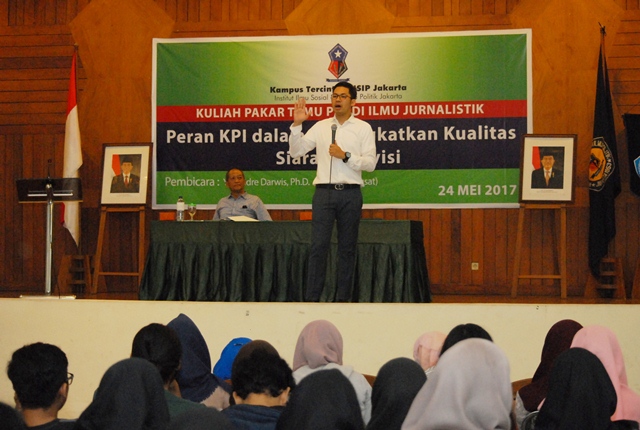 Hal itu disampaikan Ketua KPI Pusat Yuliandre Darwis di hadapan ratusan mahasiswa Fakultas Ilmu Komunikasi, Institut Ilmu Sosial dan Ilmu Politik (IISIP) Jakarta, Rabu (23/5/17).