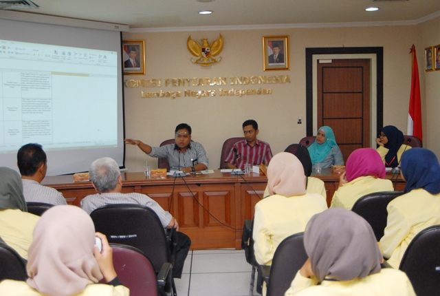 Jakarta - Komisi Penyiaran Indonesia (KPI) Pusat menerima kunjungan mahasiswa Fakultas Ilmu Sosial (FIS), Universitas Negeri Padang (UNP) dalam rangka belajar tentang penyiaran dan untuk mengetahui secara langsung sistem kerja pemantauan program acara dari Lembaga Penyiaran. Acara berlangsung pada, Selasa, 28 April 2015 di Ruang Rapat KPI Pusat, Jakarta yang diikuti oleh 50 mahasiswa dan empat dosen pembimbing.