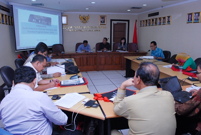 Jakarta – Komisi Penyiaran Indonesia (KPI) Pusat melakukan penyempurnaan draft revisi Pedoman Perilaku Penyiaran dan Standar Program Siaran (P3SPS) KPI sebelum disahkan dalam Rapat Pimpinan Nasional (Rapimnas) di Jakarta pada 1 sampai 4 September 2015. Proses penyempurnaan draft ini melibatkan Komisi Penyiaran Indonesia Daerah dan berlangsung di kantor KPI Pusat, Rabu, 19 Agustus 2015.