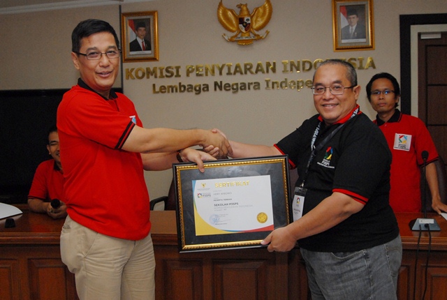 Usai menutup kegiatan Sekolah P3 dan SPS KPI Angkatan XIII, Yuliandre Darwis yang didampingi Mayong memberikan piagam bagi peserta yang lulus pelatihan dan berlangsung selama tiga hari berturut-turut (20-22 September 2016).