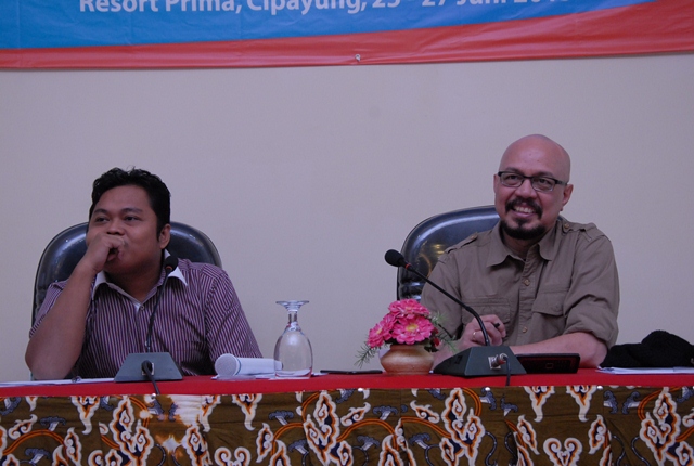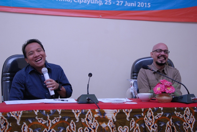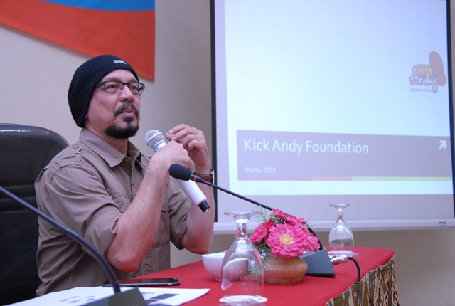 Cipayung – Andy Flores Noya akrab disapa Andy presenter acara penuh inspiratif “Kick Andy” berbagi pengalaman dengan kru monitoring isi siaran KPI Pusat dalam kegiatan Bimbingan Teknis (Bimtek) Monitoring Isi Siaran tahun 2015 di Cipayung, Bogor, Jumat lalu, 26 Juni 2015.