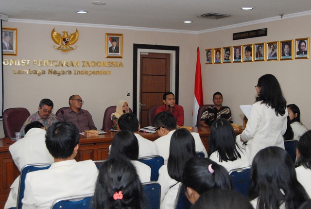 Jakarta – Komisi Penyiaran Indonesia (KPI) Pusat kedatangan mahasiswa FISIP jurusan Broadcasting Universitas Kristen Satya Wacana Salatiga (UKSW), Senin, 19 September 2016. Para mahasiswa yang sebagian besar mahasiswa tingkat dua itu ingin mengetahui lebih banyak tugas dan fungsi KPI khususnya dalam pengawasan isi siaran.