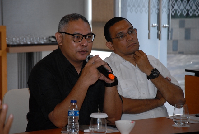 Komisioner KPI Pusat, Hardly Stefano saat menjadi narasumber acara Focus Group Discussion tentang Penyusunan Standar Tata Laksana Pengawasan Kampanye di Media dan Rapat Umum dalam Pemilu 2019 yang dilaksanakan Badan Pengawas Pemilihan Umum (Bawaslu) di Hotel Santika Premiere ICE BSD, Tangerang Selatan, Selasa (22/1/2019).
