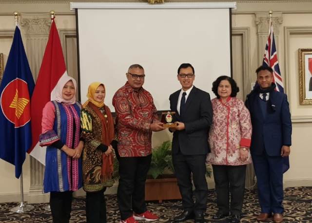 Sydney - Konsul Jenderal Republik Indonesia di Sydney, Heru Hartanto Subolo didampingi oleh Konsul Penerangan, Sosial dan Budaya KJRI Sydney menerima kunjungan Komisioner KPI Pusat, Kamis (20/9/2019). Delegasi KPI Pusat dipimpin Hardly Stefano Fenelon Pariela, Komisioner KPI Pusat sekaligus Koordinator bidang Isi Siaran.