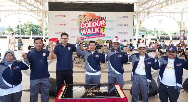 Banjarmasin – Menyemarakkan Pemilu 2019 dan Peringatan Hari Penyaran Nasional (Harsiarnas) ke 86 yang jatuh besok hari (1/4/2019), Badan Pengawas Pemilu (Bawaslu) Provinsi Kalsel menggelar jalan santai bertajuk Bawaslu Colour Walk 2019, Minggu (31/3/2019).