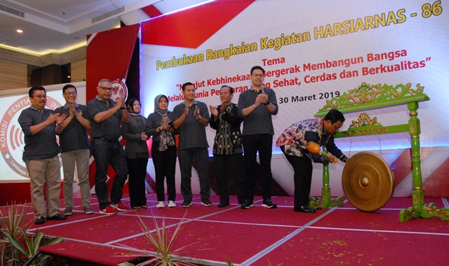 Gubernur Kalimantan Selatan (Kalsel), Sahbirin Noor, disaksikan Ketua KPI Pusat, Yuliandre Darwis, Ketua KPID Kalsel dan Komisioner KPI Pusat lain, membuka secara resmi membuka rangkaian acara Peringatan Hari Penyiaran Nasional (Harsiarnas) ke 86 di Banjarmasin, Sabtu (30/3/2019).