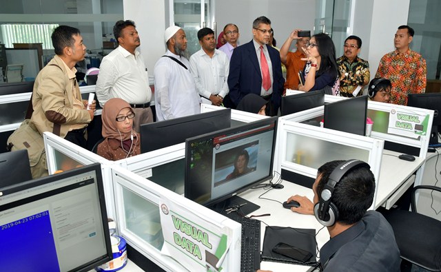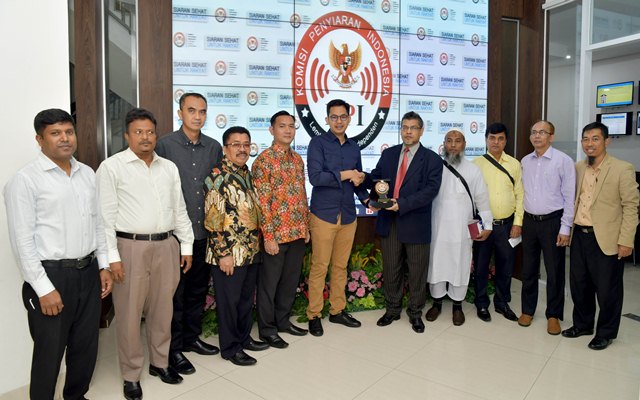 Komisioner KPI Pusat berfoto bersama dengan jajaran pimpinan My TV usai audiensi di Kantor KPI Pusat, Rabu (24/4/2019).