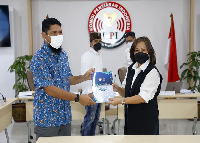 Evaluasi tahunan TV yang rutin dilakukan KPI ini menyampaikan hasil penilaian terhadap implementasi sistem stasiun jaringan (SSJ) TV induk jaringan mencakup alokasi konten lokal 10%, kepatuhan pada aturan Pedoman Perilaku Penyiaran dan Standar Program Siaran (P3SPS) KPI hingga kualitas konten yang berdampak pada apresiasi dan sanksi. Kegiatan evaluasi akan berlangsung hingga minggu depan secara daring dan luring. ***/Foto: AR/Editor: MR