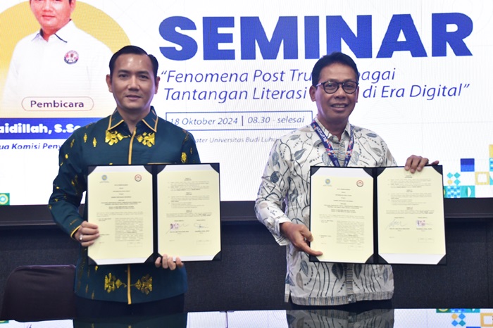 Jakarta – Komisi Penyiaran Indonesia (KPI) Pusat dan Universitas Budi Luhur (UBL) melakukan penandatanganan nota kesepahaman dan kerja sama atau MoU (memorandum of understanding), Jumat (18/10/2024) di Ruang Theater Universitas Budi Luhur, Jakarta. MoU ini diharapkan makin menguatkan partisipasi masyarakat khususnya kalangan akademika dalam pengawasan dan peningkatan kualitas penyiaran di tanah air.