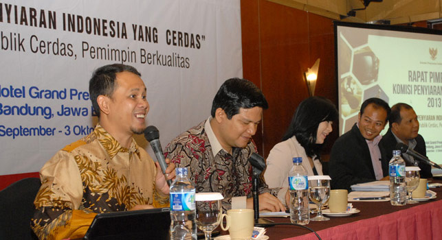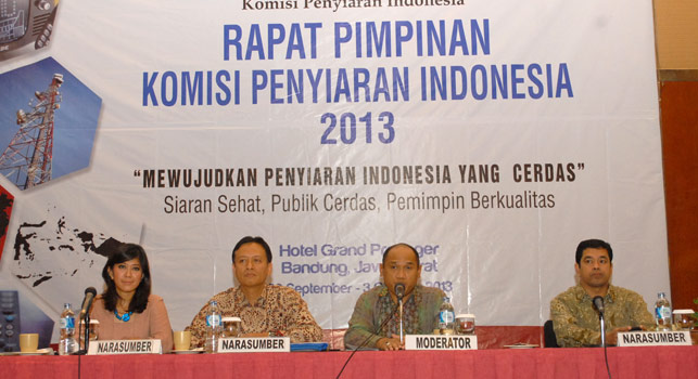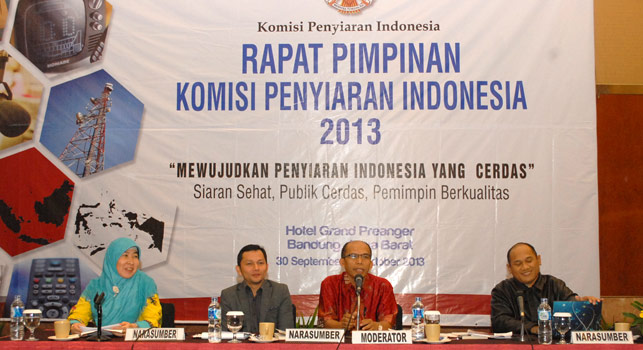 Bandung – Rapim KPI 2013 bidang Isi Siaran bahas poin-poin krusial yang akan dimasukan dalam pedoman penyiaran Pemilu 2014, Rabu, 2 Oktober 2013 di Hotel Grand Preanger, Bandung. Rapat di pimpin langsung Komisioner bidang Isi Siaran KPI Pusat yakni S. Rahmat Arifin, Agatha Lily dan Idy Muzayyad.