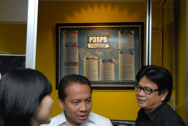 Usai pertemuan, tim verifikasi melakukan kunjungan ke bagian produksi dan control siaran Trans TV di gedung yang sama.