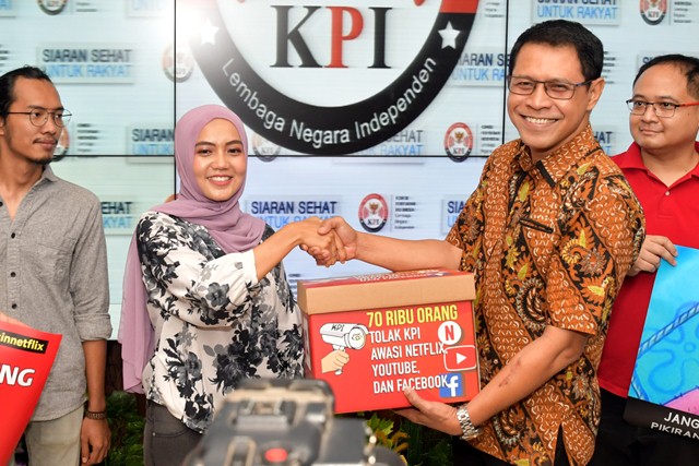 Jakarta – Komisi Penyiaran Indonesia (KPI) menerima petisi daring #KPIJanganUrusinNetflix di Change.org, Rabu (14/8/2019). Petisi tersebut diserahkan penggagasnya, Dara Nasution kepada Wakil Ketua KPI Pusat, Mulyo Hadi Purnomo di Kantor KPI Pusat.