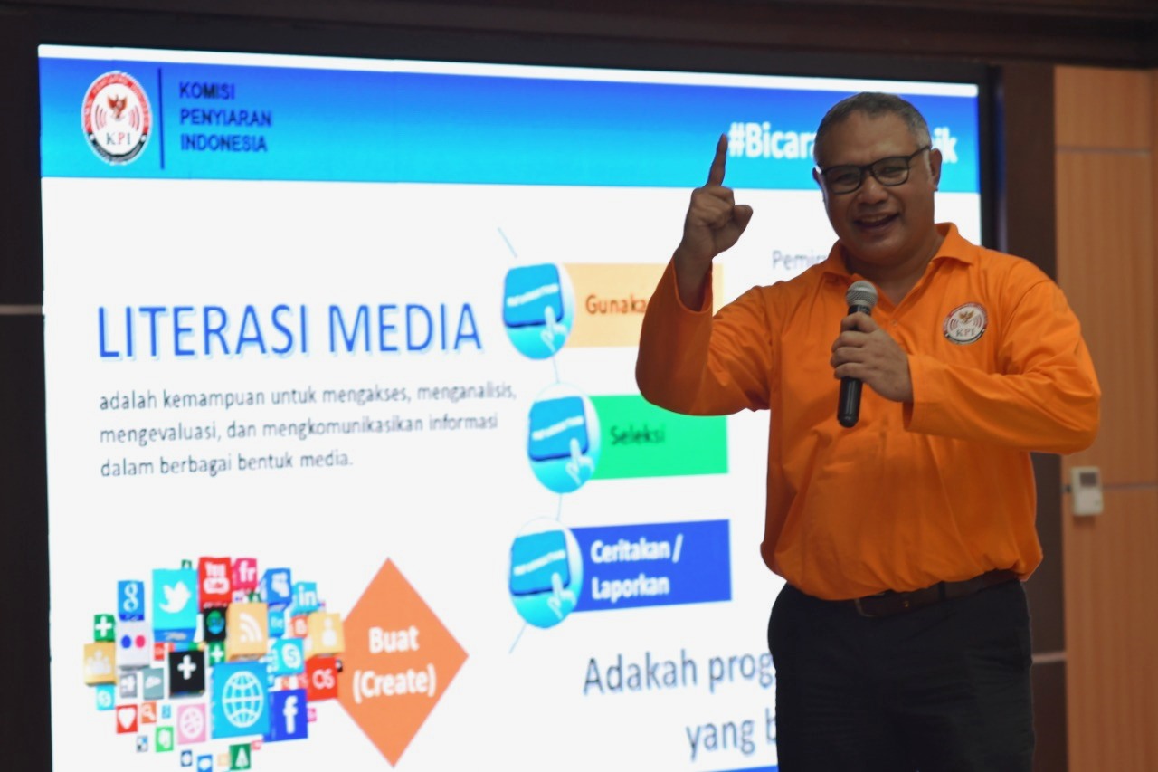 Jakarta - Literasi media merupakan usaha intervensi Komisi Penyiaran Indonesia (KPI) untuk menghadirkan program siaran yang berkualitas baik di televisi dan radio. Lewat literasi media ini, masyarakat diedukasi tentang program-program mana yang layak untuk ditonton dan mana yang tidak. Harapannya dengan hadirnya kesadaran yang baik ini, selera konsumsi masyarakat pun jadi lebih baik, hanya menonton program yang berkualitas baik. Hal ini disampaikan Komisioner KPI Pusat bidang kelembagaan,Hardly Stefano Pariela, pada Seminar Literasi Media yang dilaksakanakan dalam rangka Gerakan Literasi Sejuta Pemirsa oleh KPI Pusat di Universitas Negeri Surabaya, Jawa Timur (06/02).