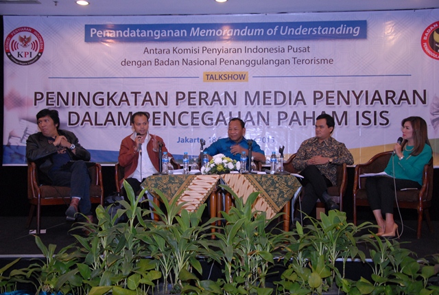 Hal itu dikemukakan oleh Kepala Badan Penanggulangan Nasional Terorisme (BNPT) Saud Usman Nasution dalam talk show, "Peningkatan Peran Media Penyiaran dalam Pencegahan Paham ISIS", usai penandatanganan nota kesepahaman antara KPI dan BNPT. Acara yang dipandu oleh Fifi Aleyda Yahya itu juga menghadirkan Wakil Ketua KPI Pusat Idy Muzayyad, Gun Gun Heryanto, dan Ikang Fawzi. Acara berlangsung di Hotel Sahid Jaya Jakarta, Jumat, 18 September 2015.