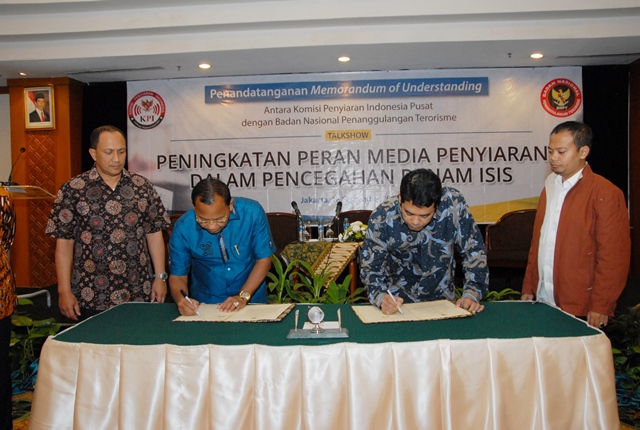 Penandatangan nota kesepahaman kedua lembaga berlangsung di Hotel Grand Sahid Jaya Jakarta, Jumat, 18 September 2015 yang dihadiri kedua pimpinan lembaga, perwakilan lembaga penyiaran, sejumlah media, serta tamu undangan dari sejumlah lembaga.
