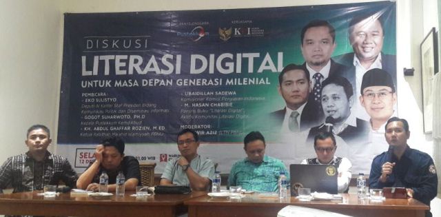 Jakarta- Di tengah pertumbuhan teknologi internet dan perkembangan sosial media yang massif, penting untuk mengkampanyekan literasi digital. Hal ini, menjadi kesepakatan lintas institusi, dalam diskusi "Literasi Digital untuk Masa Depan Generasi Milenial", yang dihelat di Warung Daun, Cikini, Jakarta Pusat, pada Selasa malam (12/12/2017). Diskusi yang diselenggarakan Pustekkom Kemdikbud bekerjasama dengan Komisi Penyiaran Indonesia (KPI), dihadiri oleh pakar dan praktisi digital di antaranya, Alois Wisnuhardana (Kantor Staf Presiden/KSP Bidang Informasi), Hasan Chabibie (Pustekkom Kemdikbud), Ubaidillah Sadewa (Komisioner KPI), dan Hamzah Sahal (RMI PBNU).