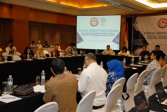 Jakarta – Komisi Penyiaran Indonesia (KPI) Pusat menggelar diskusi terbatas membahas penguatan dan evaluasi kegiatan Survei Indeks Kualitas Program Siaran TV, Selasa (11/12/2018). Evaluasi dan pengguatan ini untuk mendapatkan formulasi yang kuat untuk survei indeks KPI di tahun berikutnya.