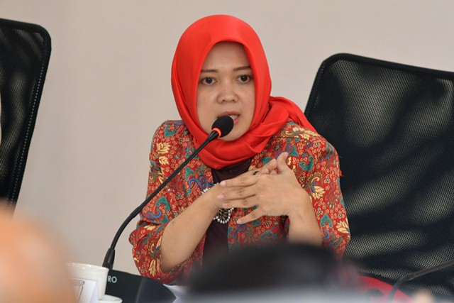 Komisioner KPI Pusat, Dewi Setyarini, saat bertemu dengan perwakilan lembaga penyiaran radio di Kantor KPI Pusat, Senin (13/8/2018).