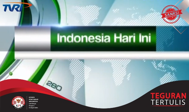 Jakarta - Komisi Penyiaran Indonesia (KPI) memutuskan menjatuhkan sanksi teguran untuk program siaran jurnalistik “Indonesia Hari Ini” di Lembaga Penyiaran Publik (LPP) TVRI, Senin pekan lalu. Sanksi itu diberikan lantaran program yang tayang pada sore hari pada 19 Juli 2018 kedapatan melanggar aturan Pedoman Perilaku Penyiaran dan Standar Program Siaran (P3SPS) KPI.