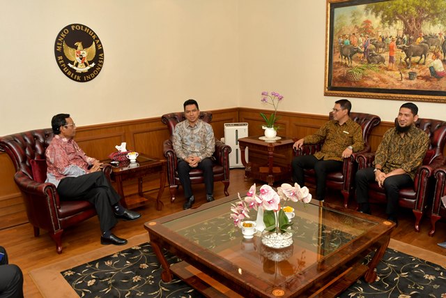 Jakarta -- Komisi Penyiaran Indonesia (KPI) melakukan pertemuan secara terpisah dengan Ketua Dewan Pertimbangan Presiden (Watimpres), Jenderal (Purn) Wiranto dan Menteri Koordinator Politik, Hukum dan Keamanan, Mahfud MD, Kamis (20/2/2020). Pertemuan KPI Pusat dengan Menkopolhukam berlangsung di Kantor Kemenkopolhukam. Adapun dengan Ketua Watimpres di Kantor Watimpres di Komplek Bina Graha Jakarta.
