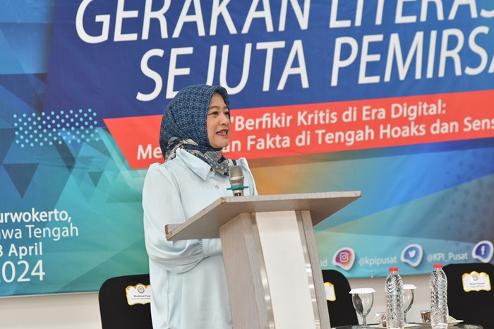 Anggota KPI Pusat Mimah Susanti, saat membuka kegiatan Gerakan Literasi Sejuta Pemirsa (GLSP) di Purwokerto, Kabupaten Banyumas, Jawa Tengah, Kamis (18/4/2024), mengatakan masyarakat yang melek media memiliki kemampuan untuk menangkal dampak negatif yang berasal dari informasi maupun hiburan yang berasal dari media apapun.