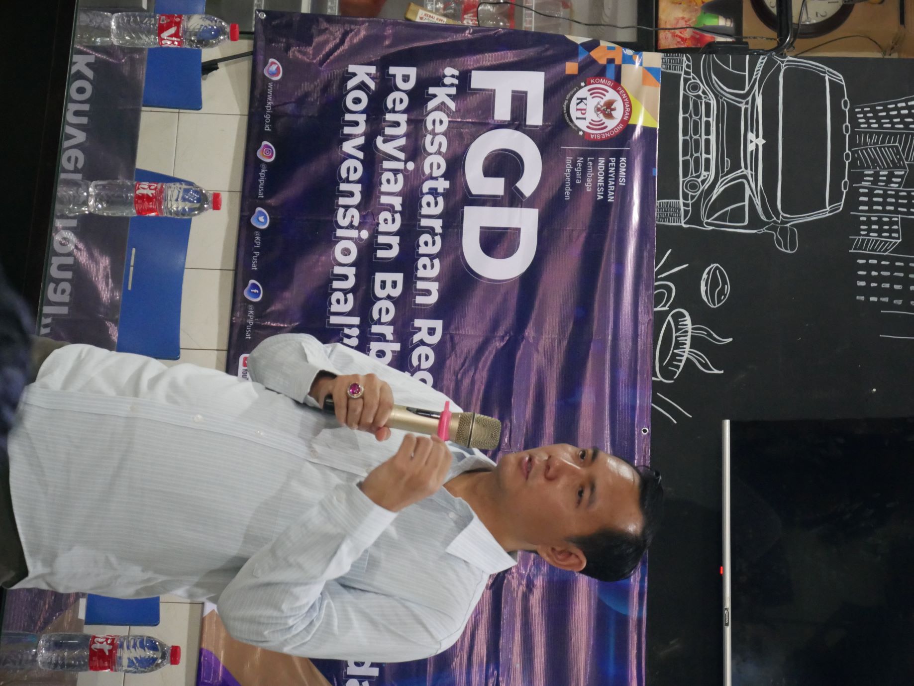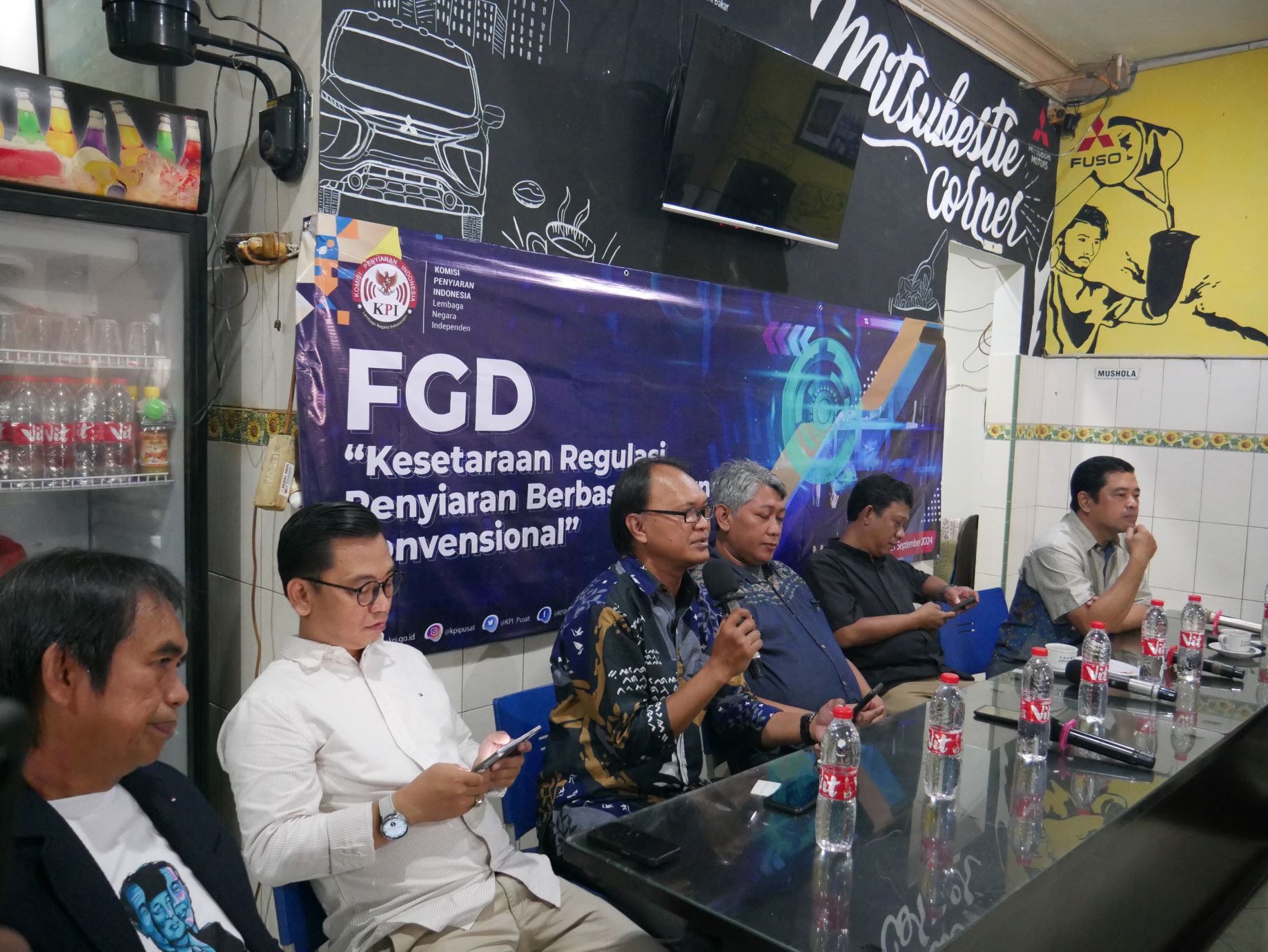 Hadir dalam diskusi tersebut Ketua KPI Pusat Ubaidillah, Wakil Ketua KPI Pusat Mohamad Reza, Koordinator Bidang Pengelolaan Kebijakan dan Struktur Penyiaran (PKSP) KPI Pusat Muhammad Hasrul Hasan, Anggota KPI Pusat Bidang Pengawasan Isi Siaran Aliyah, dan Anggota KPI Pusat Bidang Kelembagaan Mimah Susanti.