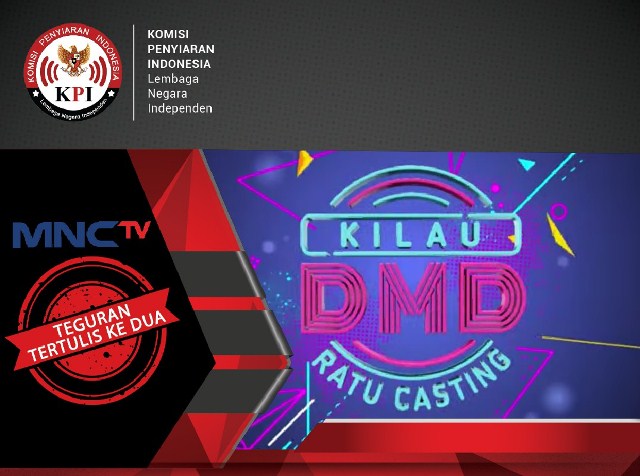 Jakarta -- Komisi Penyiaran Indonesia (KPI) Pusat memberikan sanksi administrasi teguran kedua untuk program siaran “Kilau DMD Ratu Casting” MNC TV. Program siaran ini ditemukan muatan yang mengabaikan dan melanggar aturan Pedoman Perilaku Penyiaran dan Standar Program Siaran (P3SPS) KPI tentang norma kesopanan dan kesusilaan.